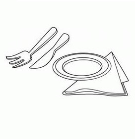 4. На завтрак ты кушаешь яичницу. Давай нарисуем тарелку, вилку и ножик.