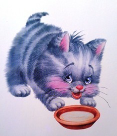 Упражнение «Котенок лакает молоко»: широко открываем рот, делаем 4-5 движений широким языком, как бы лакая молоко. Закрываем рот. Убираем язычок. Даем ребенку время для отдыха и расслабления, предлагаем сглотнуть слюну. Повторяем упражнение 3-4 раза.