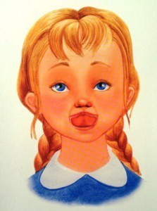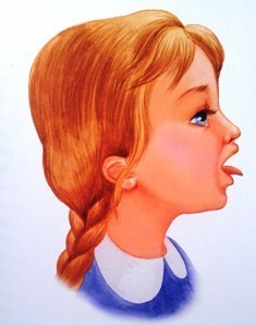 Упражнение «Улыбка-трубочка»: разводим уголки губ в стороны, задерживаем в таком положении на 2-3 секунды; вытягиваем губы вперед, задерживаем на такое же время. Зубы при выполнении упражнения сжаты. Даем ребенку время для отдыха и расслабления. Предлагаем сглотнуть слюну. Повторяем упражнение 3-4 раза